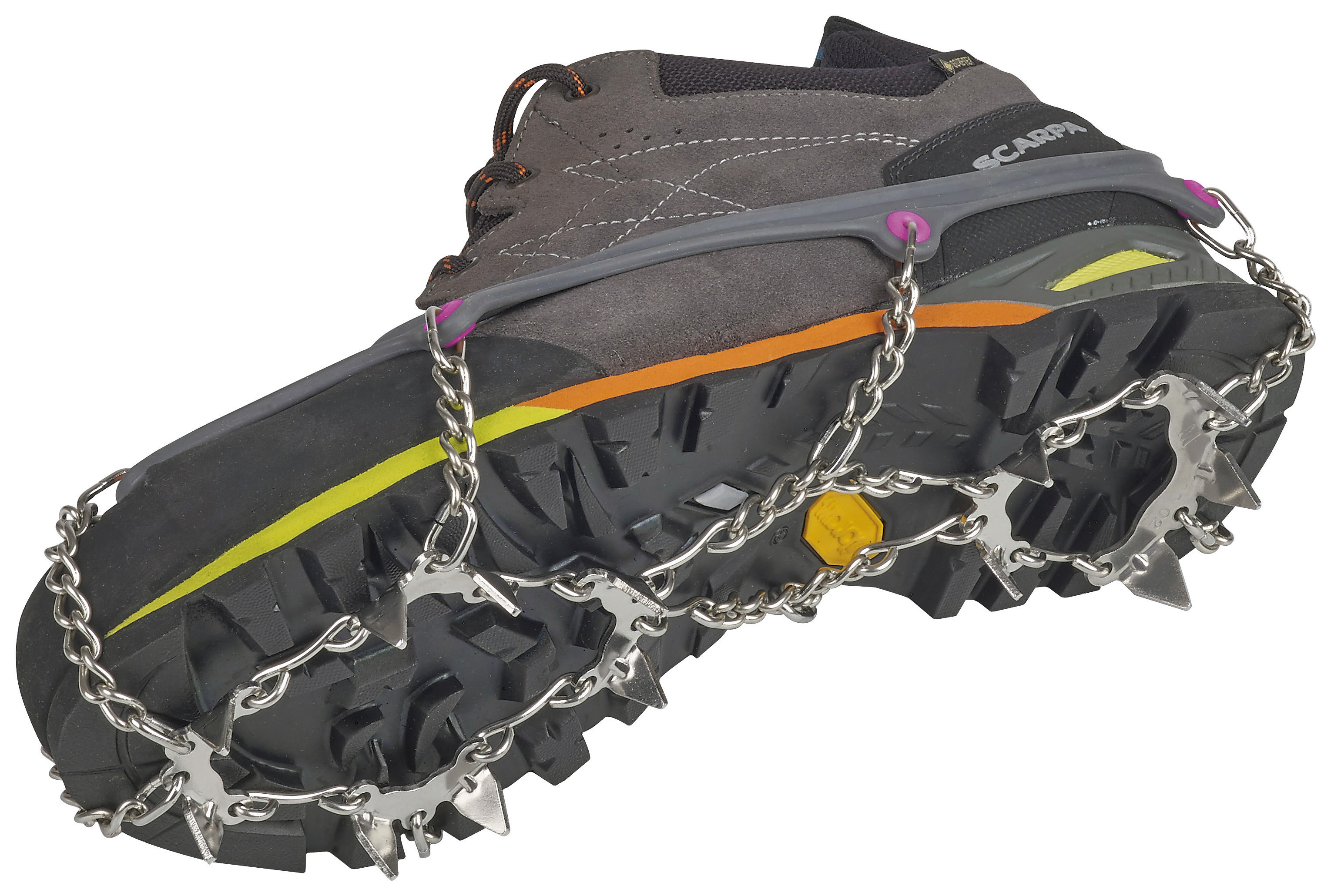Turistické nesmeky z nerezové oceli se 13hroty a výškou hrotů 13 mm.
