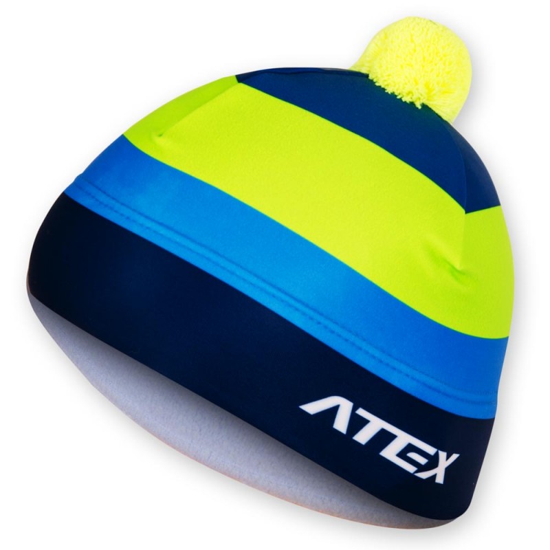 Čepice ATEX STRIPES 1 dvouvrstvá s bambulí modrá/zelená