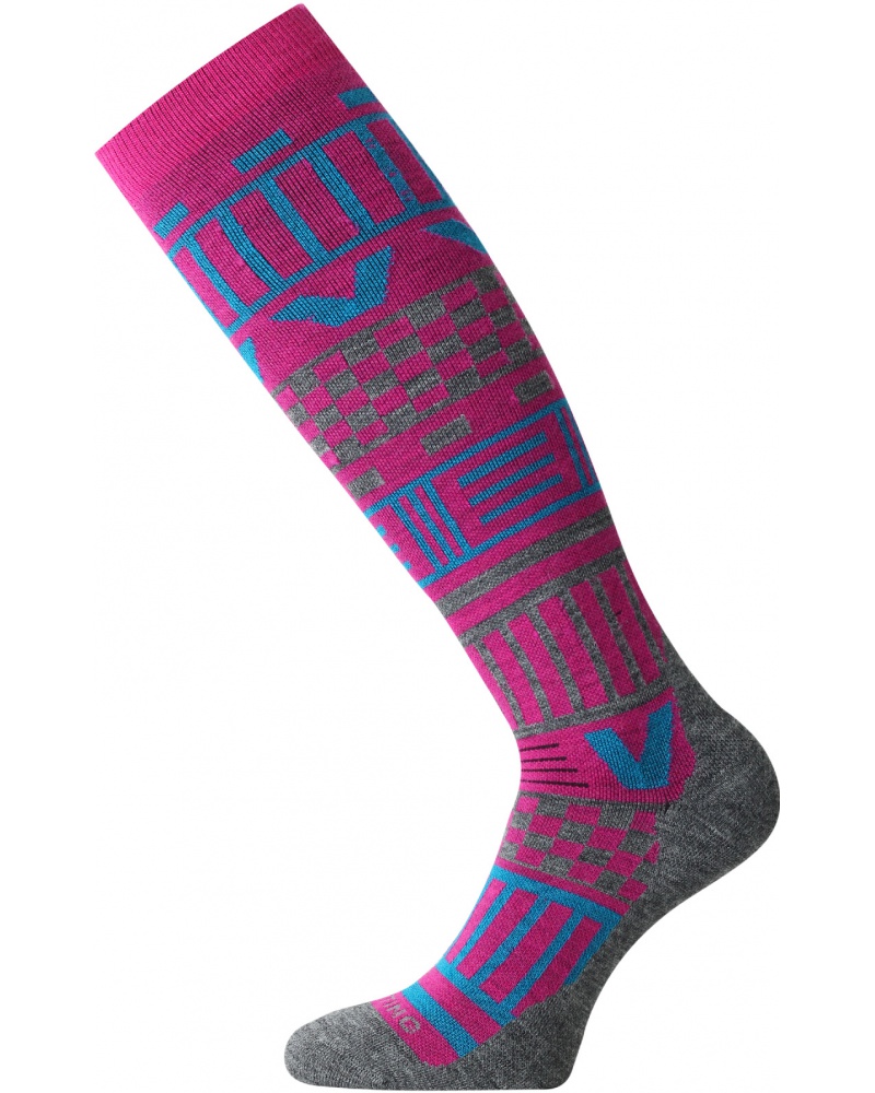 Lyžařské ponožky Lasting SLA 408 jsou vyrobené z měkké merino vlny, která poskytuje skvělou tepelnou izolaci a přirozenou schopnost odvádět vlhkost. Jednovrstvý plyš zaručuje pohodlí po celý den, zatímco zesílené zóny chodidla, špičky, holeně a Achillovy paty zvyšují odolnost a chrání nohy před otlaky. Jemný šev špičky a lehké stažení lemu zajišťují maximální komfort i při delším nošení. V nadnártní části je zóna podporující dopředný náklon, která zlepšuje stabilitu při jízdě na lyžích. Tyto ponožky nabízejí vysokou odolnost proti opotřebení a výborné termoizolační vlastnosti.