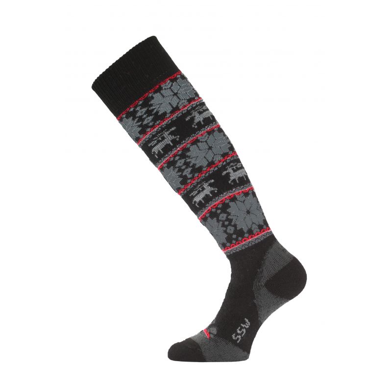 LASTING SSW lyžařská podkolenka z dvouvrstvého úpletu obsahující merino vlnu, což je unikátní přírodní materiál, poskytuje vynikající tepelnou izolaci a odvod vlhkosti. V oblasti nártu a holeně je elastická bandáž. Vrchní lem ponožky je široký a extrémně roztažný , takže příjemně obepne holeň a lýtko, aniž by tlačil. Noha je chráněna ochrannými zónami z dvojvrstvého plyšového úpletu proti oděru v oblasti lýtka, holeně a celého chodidla.