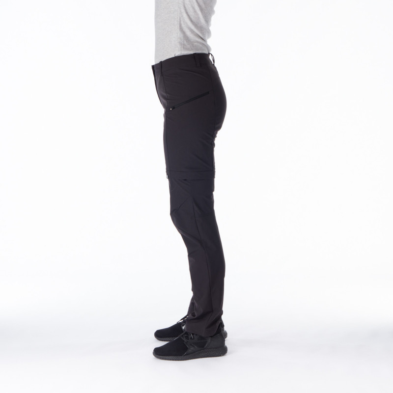 Elastické kalhoty s konstrukcí 2v1 určené pro cestování, lehkou turistiku a volný čas. Odnímatelná spodní část na zip promění kalhoty během okamžiku na šortky. Elastický polyamidový materiál s příměsí elastanu a úpravou WR zajistí, že kapky po povrchu jednoduše stečou a nečistoty se nedostanou mezi vlákna. A pokud přece jen zmoknete, uschnou doslova za pochodu. Oceníte také poutka na opasek. Tvarovaná kolena zase zajistí lepší mobilitu. Cennosti si můžete uložit do dvou bočních kapes.