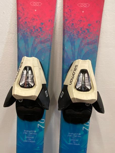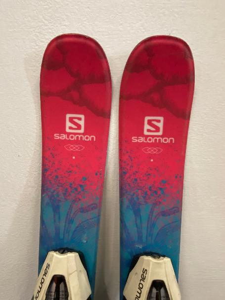 Bazarové dětské sjezdové lyže Salomon The Lux Jr, ideální pro začínající lyžaře. Tyto lyže jsou použité s kosmetickými vadami, ale jejich skluznice je ve 100% stavu, což zaručuje skvělý výkon na sjezdovce. Lyže mají atraktivní růžovo/modré provedení a délku 70 cm.