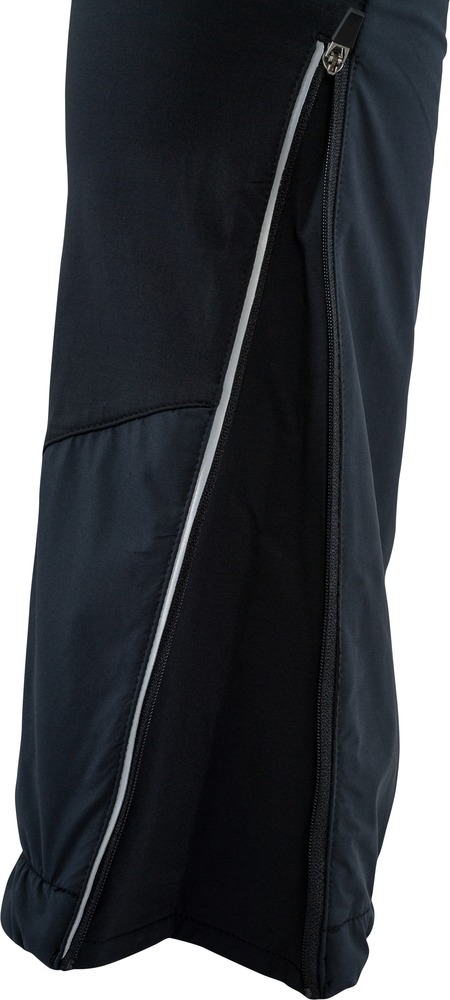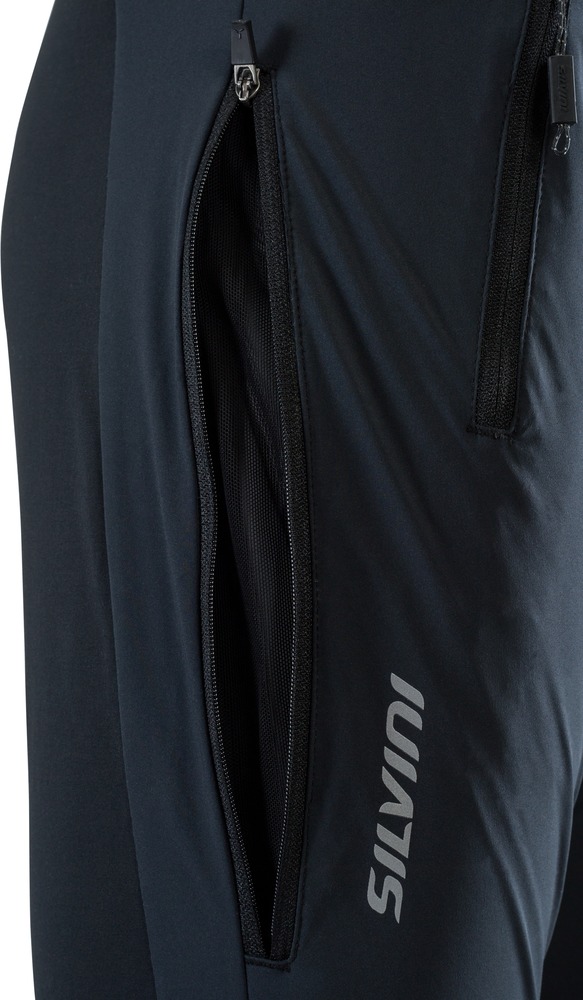 Pánské skialpové kalhoty SILVINI SORACTE MP1144 black jsou primárně určeny pro aktivní lyžaře, především skialpinisty a běžkaře, je možné je vzít i na brusle či běhání v chladných větrných podmínkách. Materiál kalhot je střižen ze dvou různých materiálů kvůli ideálním vlastnostem. Vepředu je tenký čtyřsměrně elastický Superlite softshell s membránou s parametry 10000/10000, který neprofoukne a je relativně nepromokavý, a vzadu je maximálně prodyšný měkký materiál, který pomáhá kromě termoregulace s usnadněním pohybu při zachování komfortu nošení. Softshell je složen z 88% polyamidu a 12% elastanu a je sám o sobě pružný, pro zjednodušení ohýbání v kolenou je ale navíc střihově předohnutý a rozdělený na dvě části. Zadní materiál je ještě mnohem pružnější díky složení ze 76% polyamidu a 24% elastanu. Aby se kalhoty na těle ani nepohly, SORACTE mají stahování v pase na gumu a v zadním díle stahování jsou nalepeny dva proužky silikonu. Kalhoty mají na vnější straně zip sahající od spodu až skoro ke koleni. Při jeho otevření se kalhoty rozšíří o cca. 7 cm a je možné nasadit kalhoty přes skilalpové boty. Na vnější straně stehen jsou 30 cm dlouhé zipy určené ke zvýšenému větrání při vyšších zimních teplotách nebo hodně aktivním pohybu. Aby dovnitř při otevřeném větrání nenapadal sníh, je uvnitř všita síťka.