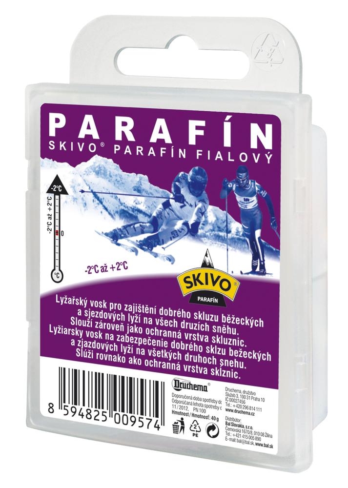 SKIVO parafín fialový pro teploty sněhu - 2°C až -2°C zajišťuje dobrý skluz běžeckých a sjezdových lyží i snowboardů. Vosk je vhodný pro základní udržbu skluznice a její konzervaci.
