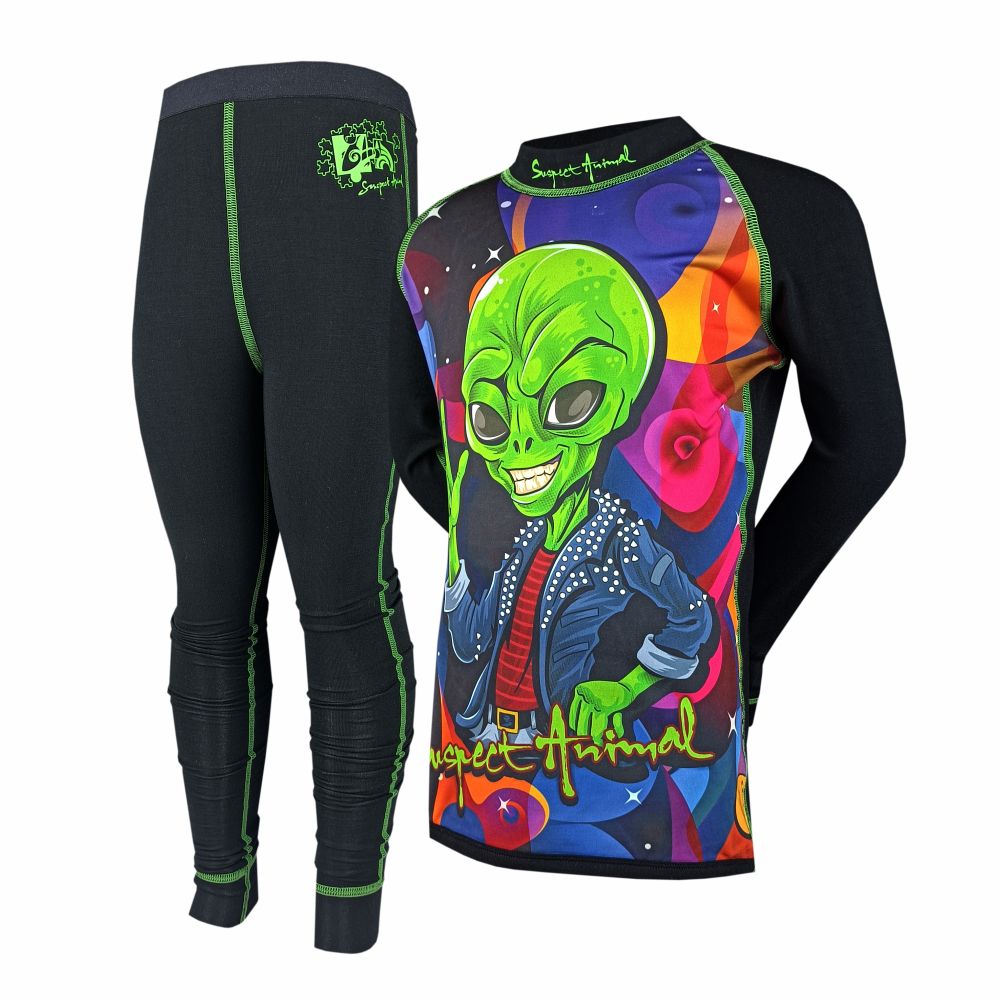 V balení setu dětského funkčního prádla najdete funkční tričko s dlouhým rukávem a dlouhé spodky.