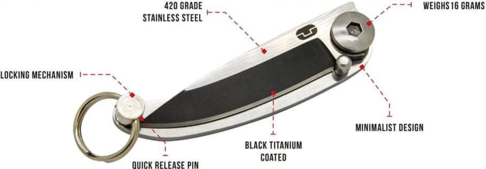 Mini nůž, který dáte opravdu všude. Má černě potaženou titanovou čepel. Zámek nože je zajištěn pomocí pinu.