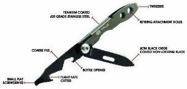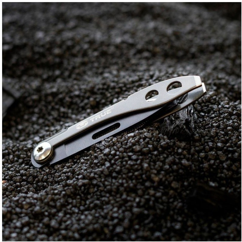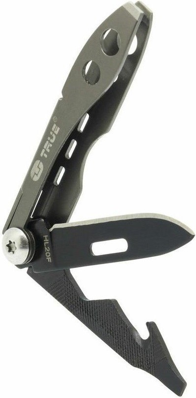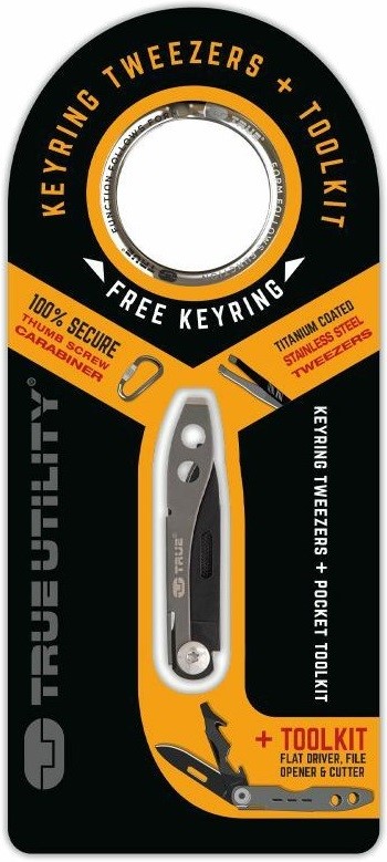 TRUE UTILITY TWEEZER TU584K je kompaktní multifunkční nůž o hmotnosti pouhých 14 g, s čepelí dlouhou 40 mm, pokrytou vrstvou titanu. Tento multifunkční nástroj z nerezové oceli 420 nabízí šest užitečných nástrojů a je vybaven otvorem pro upevnění kroužku na klíče nebo miniaturní karabinkou s pojistkou. Vše je baleno v blistru, jehož součástí je kroužek na klíče o průměru 35 mm.