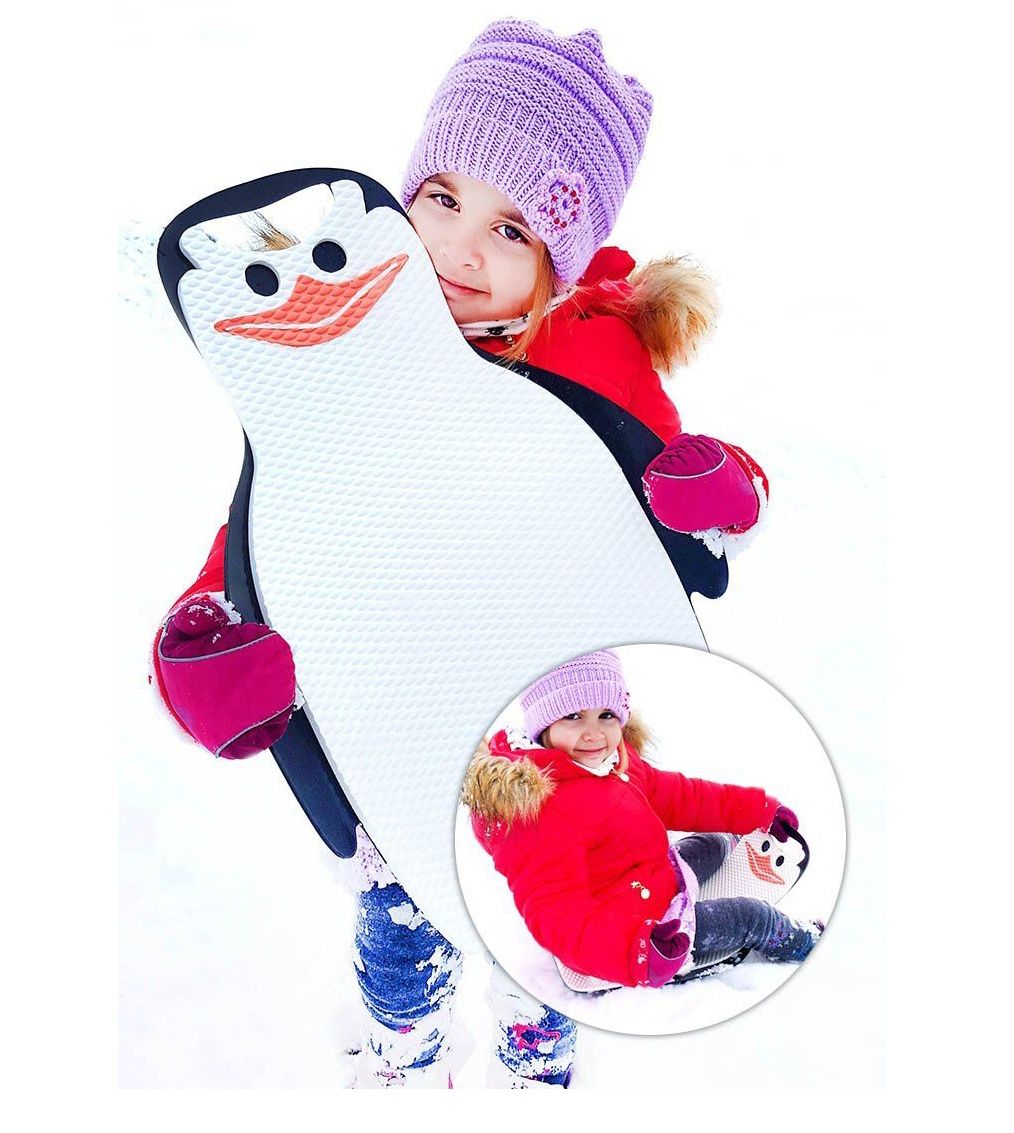 Ahoj! Jmenuji se tučňák TUKI® a rád bych se stal tvým novým kamarádem pro zimní radovánky. TUKI® je kluzák na sníh, který příjemně hřeje a má měkoučký povrch. Zespodu je z hladkého pružného plastu, takže skvěle klouže po sněhu a zároveň je odolný – vydrží víc než jednu sezónu.